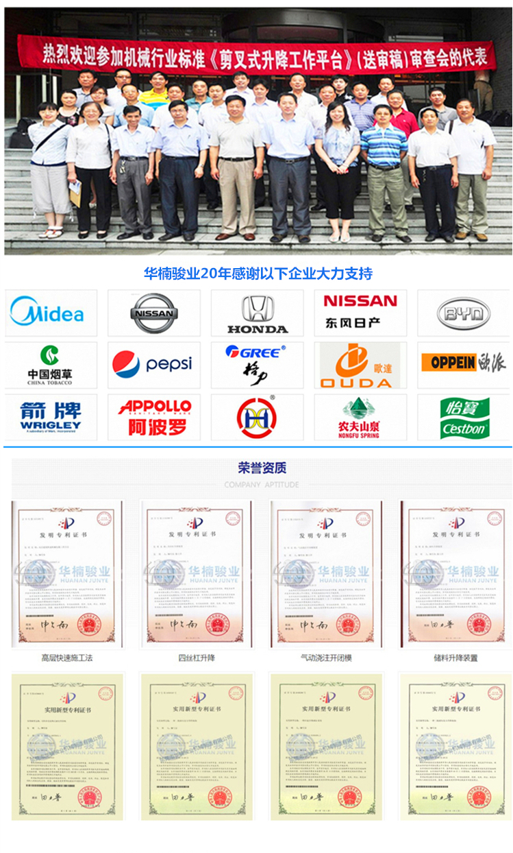 名企業(yè)輸送了高品質(zhì)的液壓升降作業(yè)平臺(tái) 。為恒大地產(chǎn) 、廣州白云國 際會(huì)展中心 、廣東現(xiàn)代國際