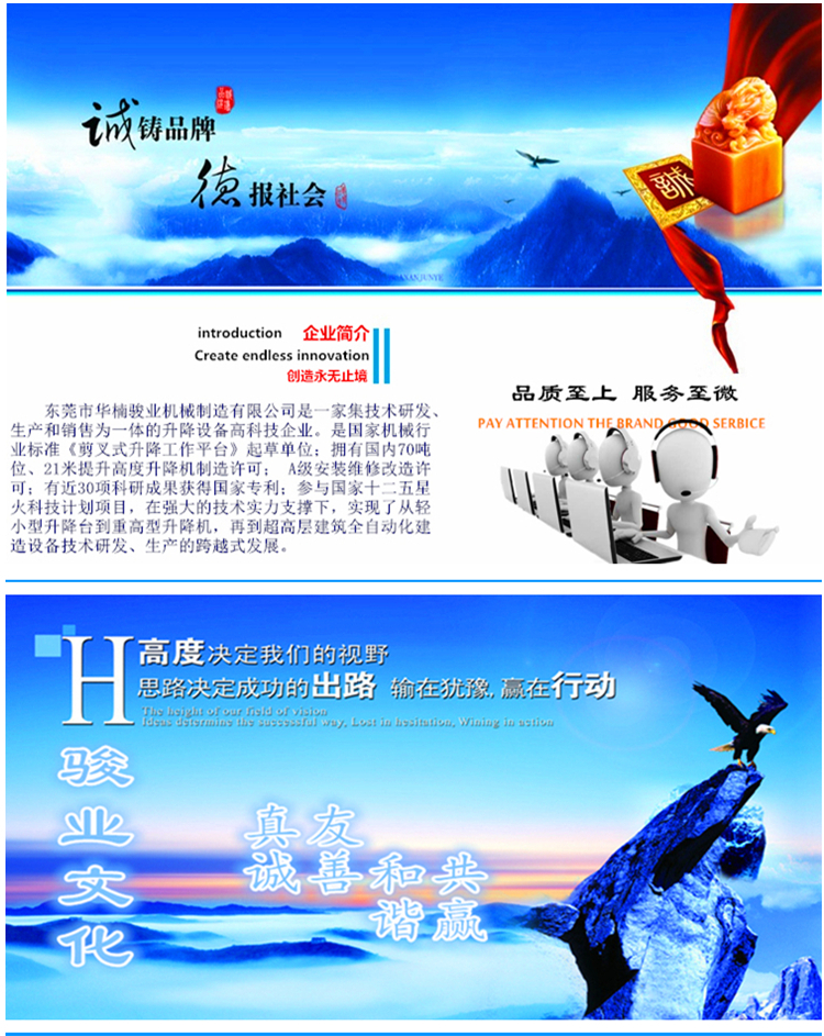知名企業(yè)輸送了高品質(zhì)的液壓升降作業(yè)平臺(tái)。為恒大地產(chǎn)、廣州白云國(guó) 際會(huì)展中心、廣東現(xiàn)代國(guó)際