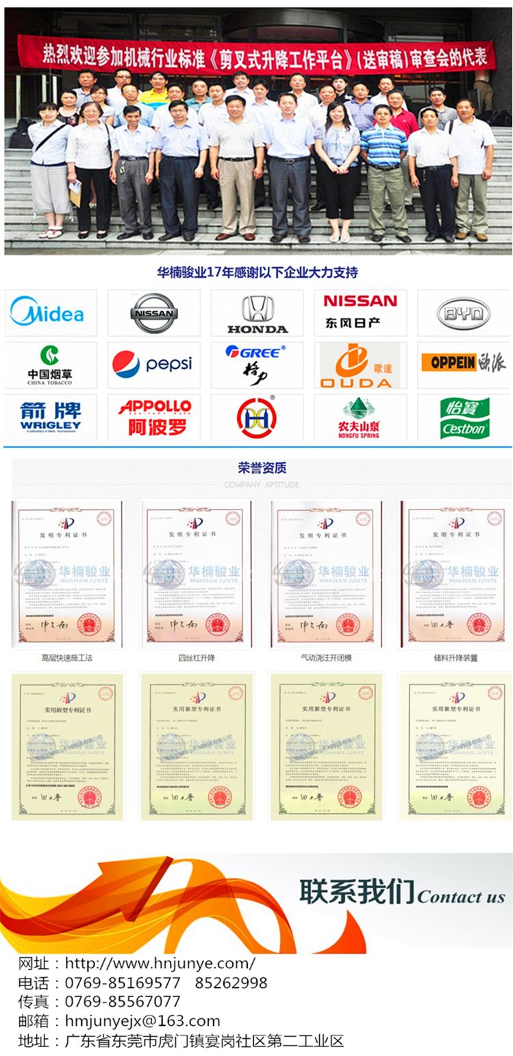 知名企業(yè)輸送了高品質(zhì)的液壓升降作業(yè)平臺(tái)。為恒大地產(chǎn)、廣州白云國(guó) 際會(huì)展中心、廣東現(xiàn)代國(guó)際